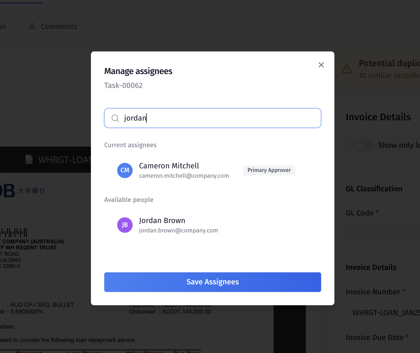 Automatic assignment ensures tasks are routed consistently, while manual assignment gives you the flexibility to override or update ownership at any time.